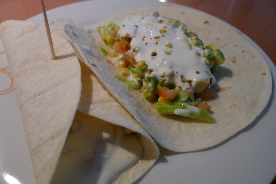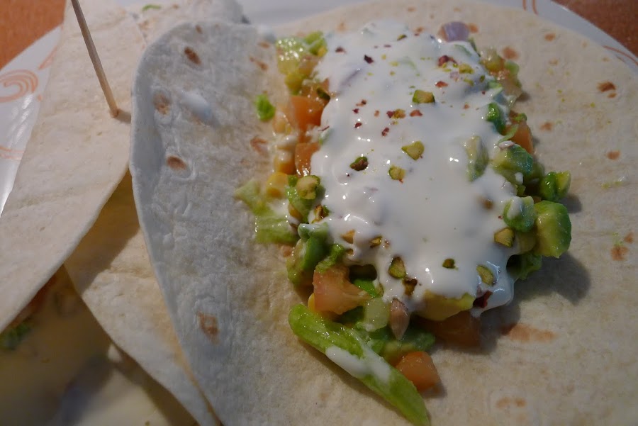 Se corta todo muy menudito,se sala ligeramente y se rocia un poco con limon,mezclamos y disponemos unas cucharadas en el centro de cada tortilla,sin pasarnos pues a la hora de cerrar se nos saldria todo.