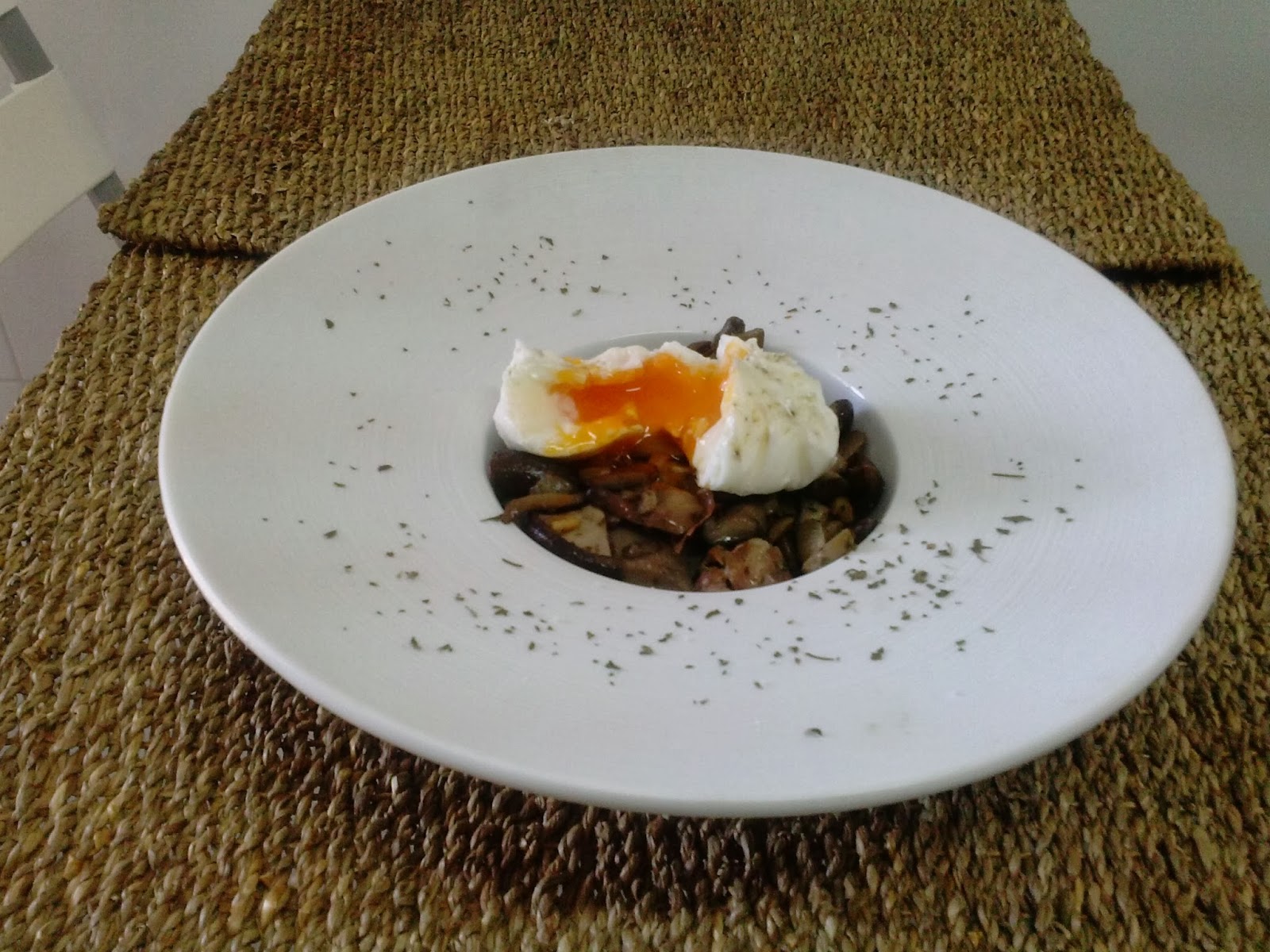 Emplatamos las setas y sobre ellas, disponemos el huevo.