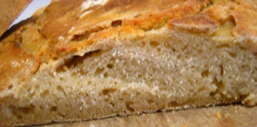 La receta del pan es de Iban Yarza podéis ver el paso a paso aqui el caso es que esta receta es de pan normal con masa madre...y como yo quería hacer pan de cebolla lo que hice es caramelizar cebolla y añadirla a la masa. El resultado fue este.