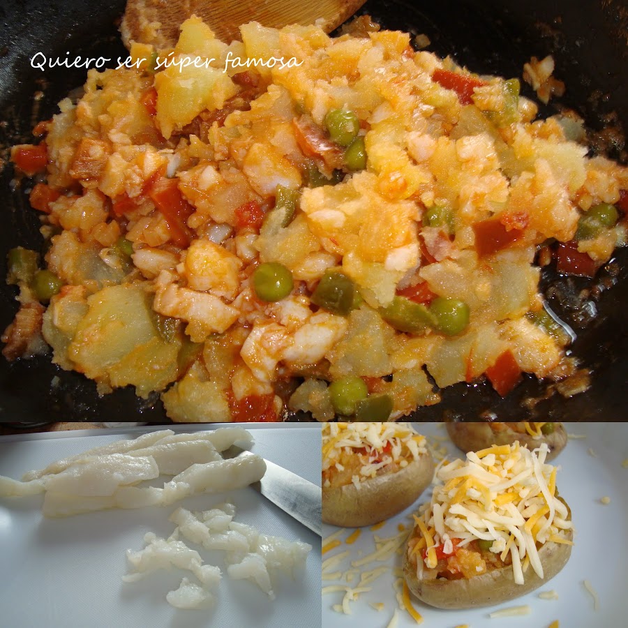 Es sencillísima su elaboración; además el relleno base se puede tener preparado con antelación y cuando aséis las patatas terminar de prepararlo en un plis plas.Ingredientes para 4 personas