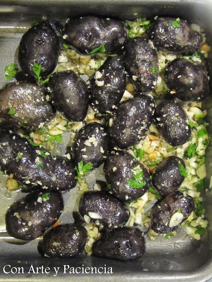 Hacemos un majado de ajo, aceite pimienta y perejil y dejamos macerar un rato.