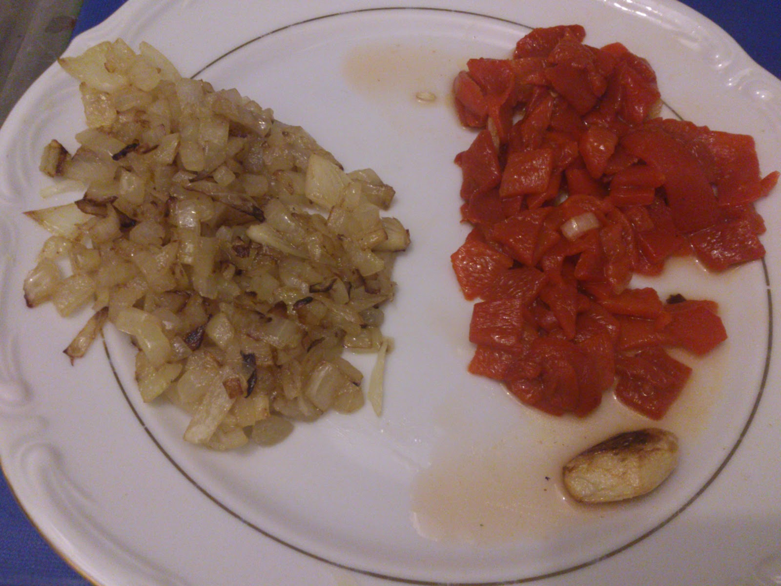 Luego pones los pimientos de piquillos y lo rehogas un poco. Reservas