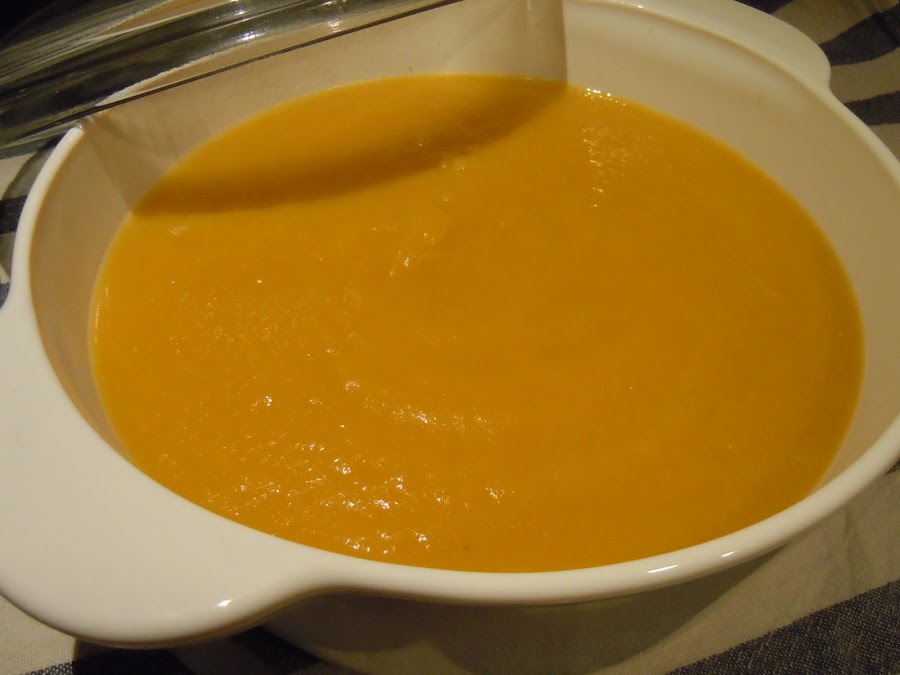 Hacer un puré con una batidora o thermomix en mi caso, corregir de sal y servir.