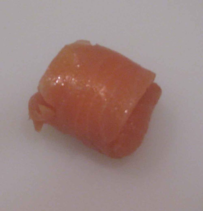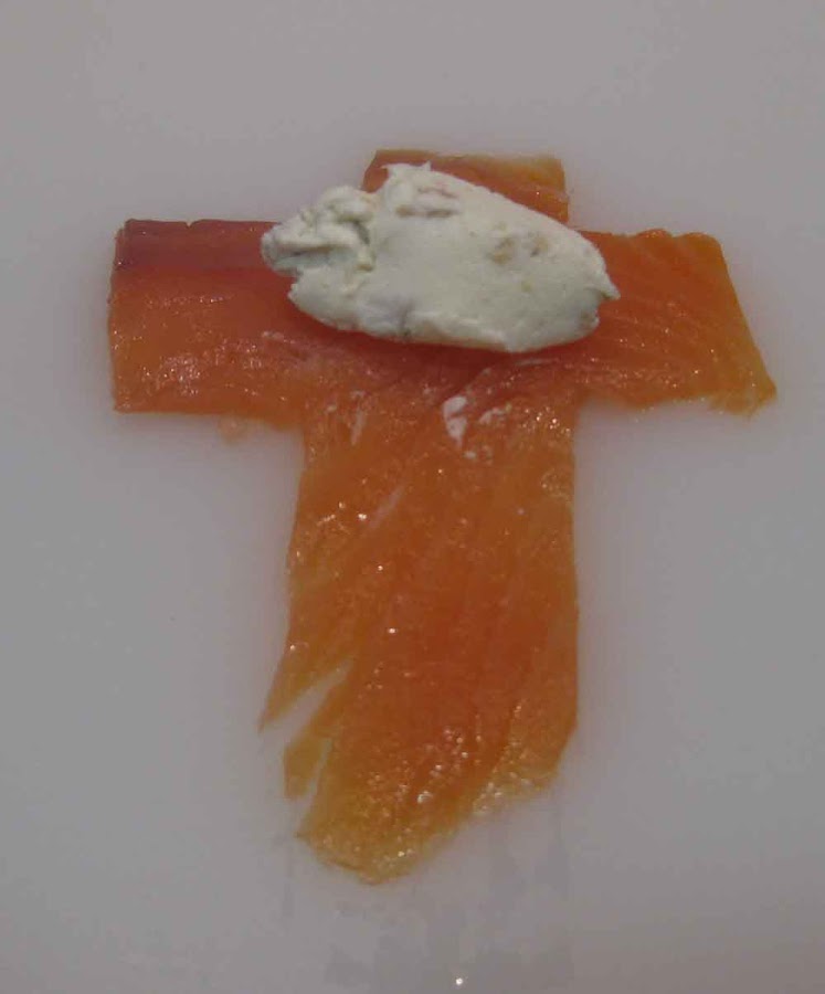 Cortamos el salmón en cruces (con un paquetito de 200 gr es suficiente para esta cantidad).