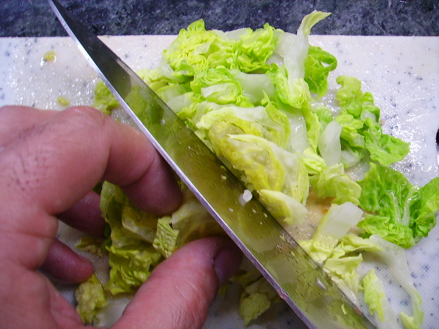 1.- Picamos el tomate y la lechuga y ponemos en la ensaladera.
