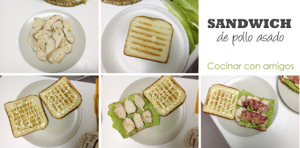 Cuando preparo "pollo asado", suelo echar unas pechugas enteras en la bandeja, me gusta tener sobras de pollo asado para hacer múltiples recetas y este sándwich de pollo asado es una de ellas, así que además de ser una cena rica de fin de semana es una receta de aprovechamiento.