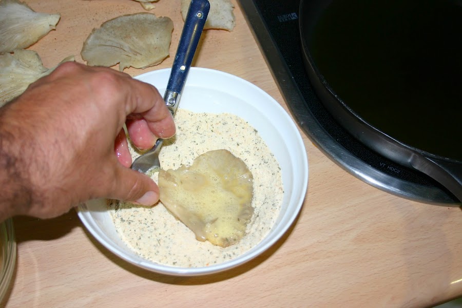 en un bol ponemos la harina, el pan rallado y el perejil y en el otro el huevo