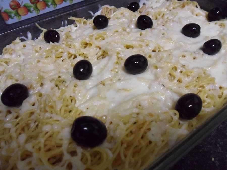 5º - Por último cubrimos con el queso rallado , unas aceitunas negras y metemos al horno hasta que el queso se derrita . Servimos y listo .
