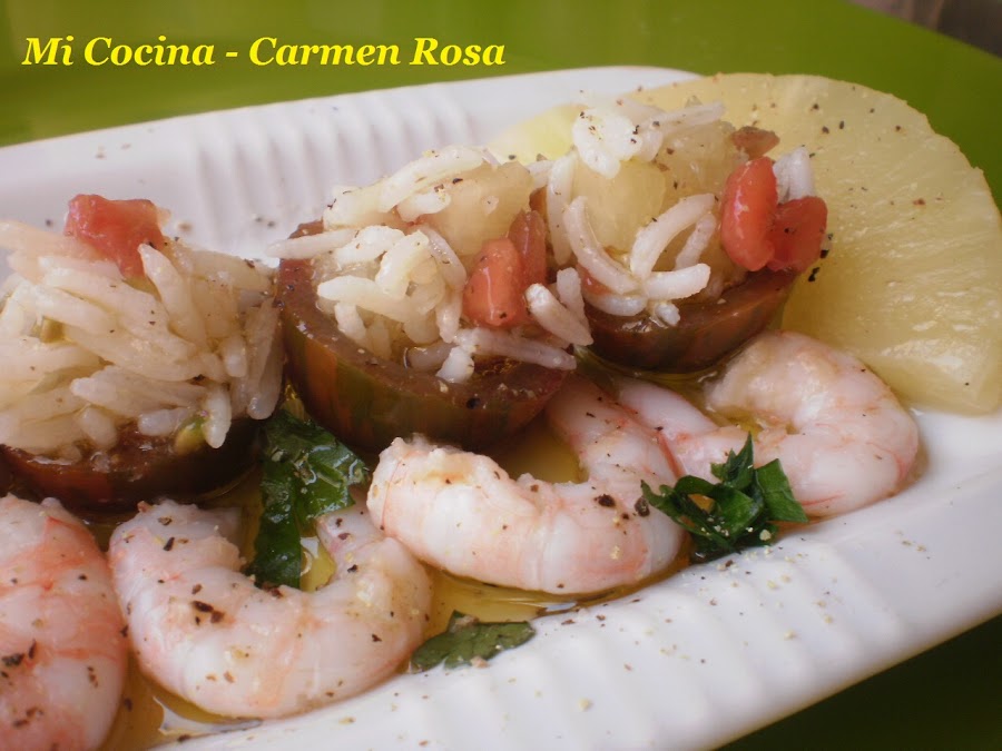 TOMATES RELLENOS CON ENSALADA DE ARROZ Y GAMBAS