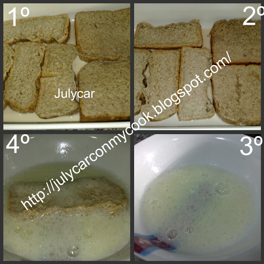 2º Colocar en un recipiente amplio donde cojan las rebanadas