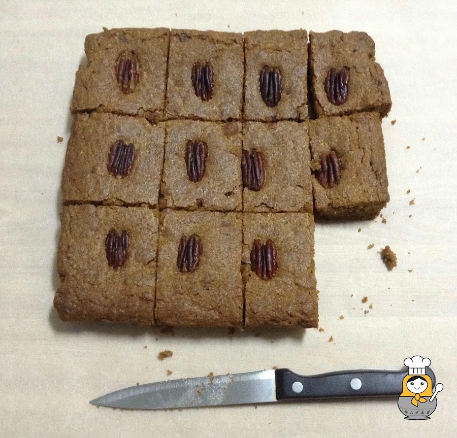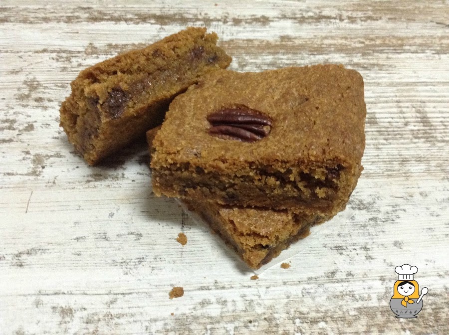 El dulce de hoy es el hermano casi gemelo del brownie aunque se diferencia de este en que ha perdido un poco de color por el camino. Crujiente por fuera y blandito y jugoso por dentro, mmmm ¡Se me hace la boca agua!