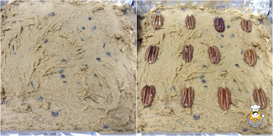 En este caso lleva nueces pecanas, que no son obligatorias pero que le dan un toque especial.