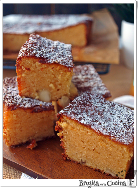 Y para merienda o para acompañar el café de media tarde, vamos en un blondie que va a gustar mucho, lo de blondie, es porque está hecho con chocolate blanco, sería como el hermano rubio del brownie.