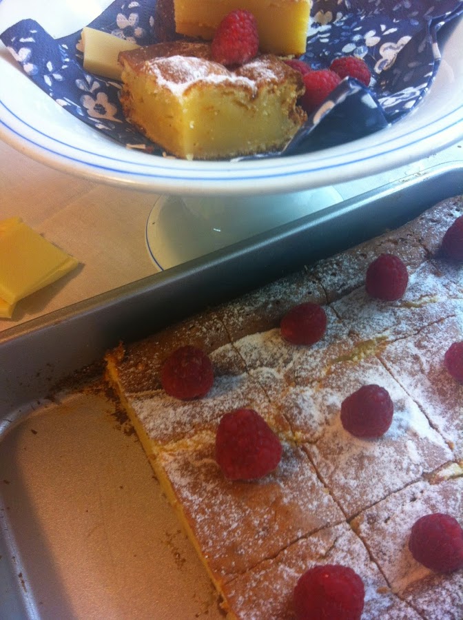 Yo he heredado la necesidad de dulce. Me reconforta comer chocolate y tengo que hacerlo a diario. Eso si, elijo sólo un par de onzas y de chocolate negro, siempre sin leche.Hoy domingo me puse a hornear este delicioso blondie (versión rubia del brownie) de chocolate blanco con un sabor intenso a naranja. ¡Viva el dulce!