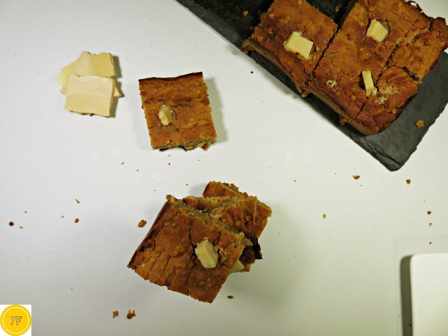 El blondie es la versión "rubia" de los brownies, utilizando chocolate blanco y nueces. No se utilizaría cacao en polvo. Como versión saludable, les traigo esta recetita, sin utilizar harinas y con un ingrediente poco utilizado para preparar postres.