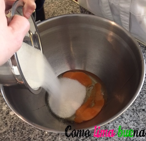 Batimos los huevos junto al azúcar hasta blanquear