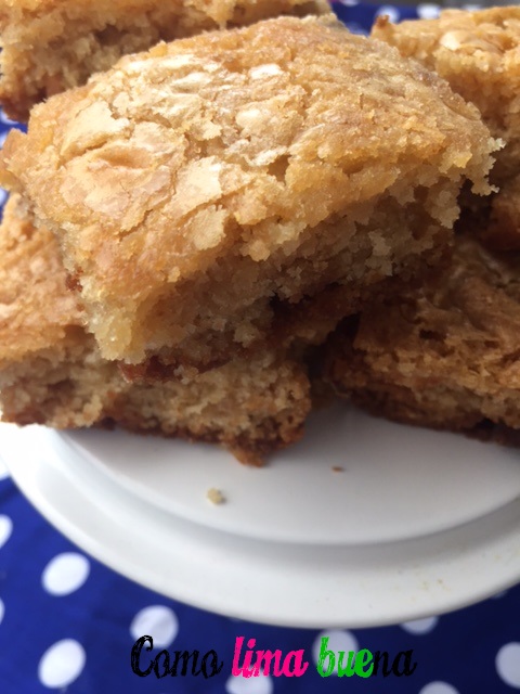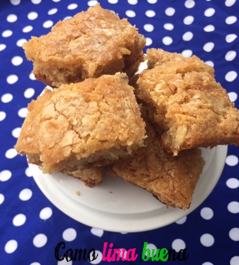 Retiramos del horno y dejamos enfriar antes de desmoldar. Cortamos en cuadraditos.