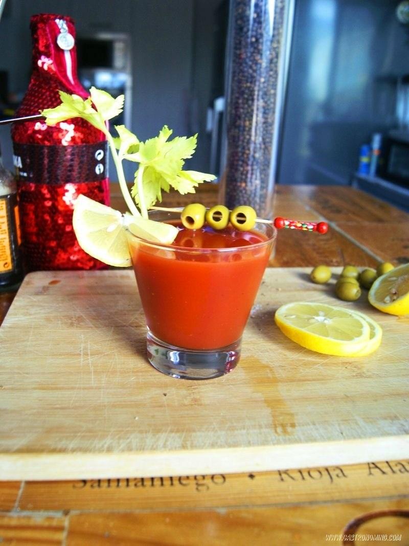 Lo más común es servirlo en vaso largo tipo Highball, pero a mi me gusta ponerlo en vaso corto, solo frío, sin hielo, así me bebo más y creo que he bebido menos jejeje, cosas de engañarse a uno mismo, además, la proporción original era la de usar menos zumo de tomate, solo el doble de lo que se usa de vodka, pero a mi me gusta más para trago largo y si por mi fuera, le echaría alguna gota más de picante y otras tantas más de salsa inglesa, pero eso ya es cuestión de gusto, tu puedes probarlo a tu manera, seguro que no te dejará indiferente. Aunque en casi todas las recetas verás que lo hacen con Tabasco, tú puedes usar tu salsa picante favorita o la que tengas a mano y pon la cantidad que más te guste pero no dejes de echarla, le da un punto de “alegría”. Hay quienes “escarchan” el vaso con un poco de zumo de limón y sal, pero considero que es mejor sin hacer ya que es un cóctel que debe beberse directamente del vaso, si por mi fuera todos deberían beberse directamente del vaso, las pajitas son para adolescentes, también verás que muchos le ponen algún pepinillo, alguna gamba… y una serie de tonterías hasta llegar a una hamburguesa si hace falta, pero ¿Qué le pasa a la gente? es un cóctel no un buffet, ¿Habrase visto?