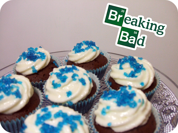 Bueno va, no es en serio del todo, los cristalitos no son más que sprinkles rebozados en colorante azul, y es que como buena seriéfila, quería hacer algo en homenaje a esta gran ficción, puesto que el domingo "Breaking Bad" dio por finalizada su emisión con un capitulo épico.