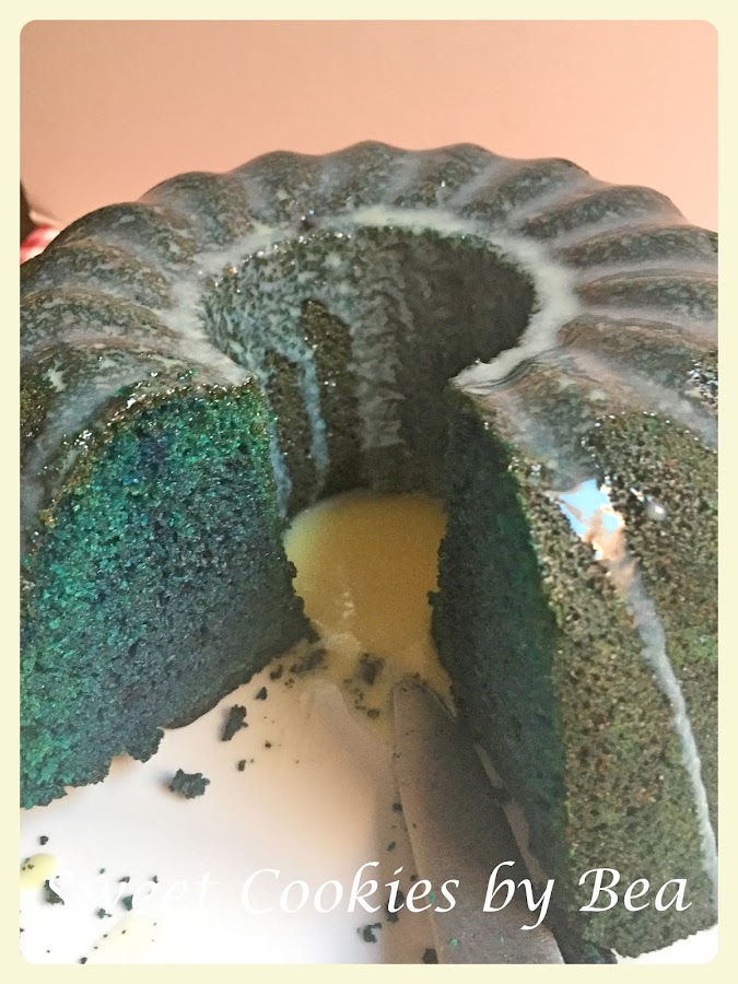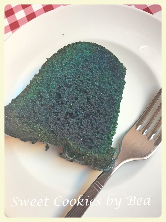 Os pido disculpas pues las fotos no hacen honor al azul de este rico bund, cometí el error de usar azúcar moreno por lo que en la receta os pongo que uséis azúcar normal.