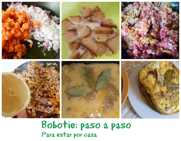 *El bobotie puede hornearse en la panificadora, sin palas y en el programa de sólo horneado que dura aproximadamente una hora. En este caso, es imprescindible que la tortilla de la parte superior esté bien cuajada y que lo dejemos reposar, después de horneado, unos 20 minutos dentro de la cubeta. Después sólo habrá que desmoldarlo sobre un plato y rápidamente darle la vuelta utilizando otro plato, para que la tortilla quede hacia arriba.