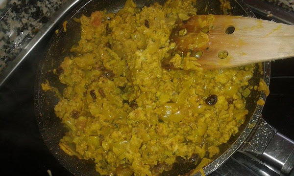Cuando la cebolla comience a transparentar, aproximadamente a los diez minutos, subir el fuego y añadir la majada, el cúrcuma, el curry, la canela y la nuez moscada.
