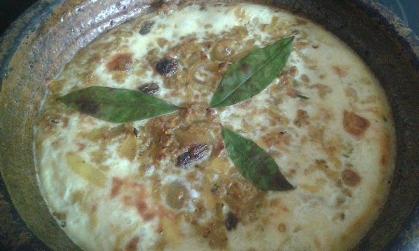 Verter la mezcla sobre la carne y, a continuación, colocar varias hojas de laurel encima.