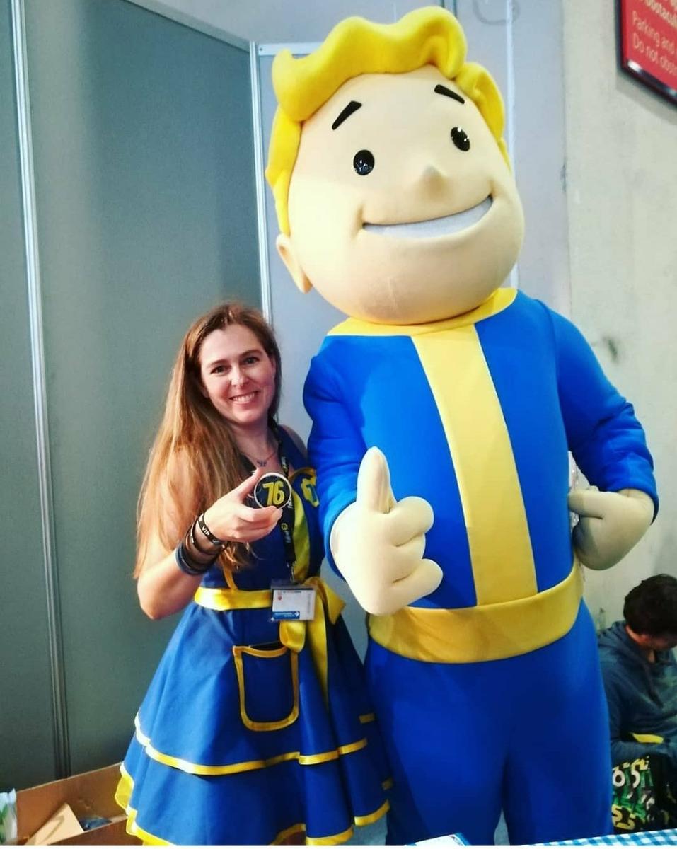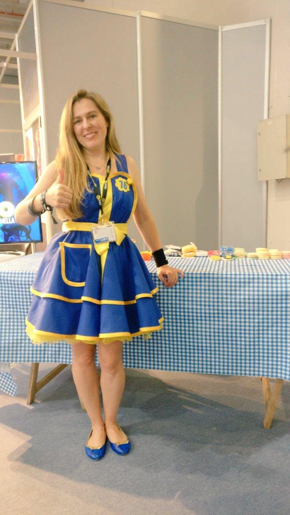Todos los que me conocéis sabéis el cariño que le tengo a cierta saga de estilo post apocalíptico, que me encanta. Tanto sus diseños, como su música… ambientada en una América postnuclear me tienen enamorada desde el primer momento. Por ello me hice un vestido delantal de Fallout para asistir al evento de Madrid Games Week este año en el que impartí 6 talleres de cocina geek.