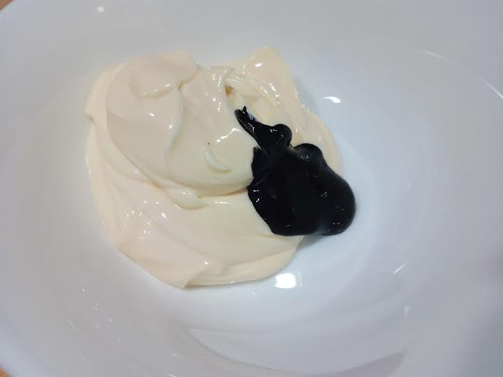 En un cuenco mezclamos la mayonesa con la tinta y reservamos.