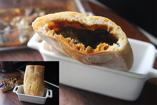 Lo difícil del plato es encontrar un recipiente para poder llevar el bocadillo a la mesa, sin que se salga su contenido.