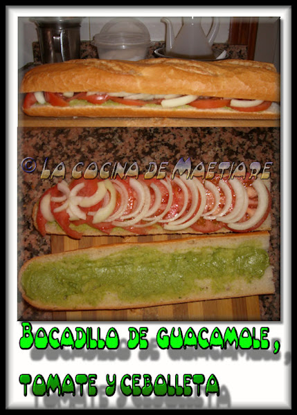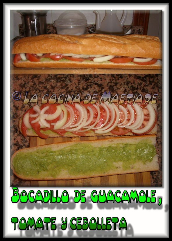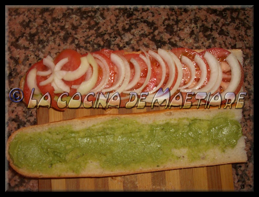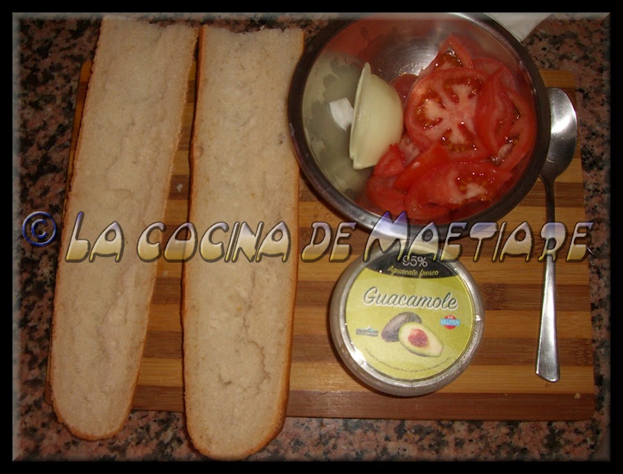 Partir el pan por la mitad a lo largo y untar las dos partes con el guacamole.