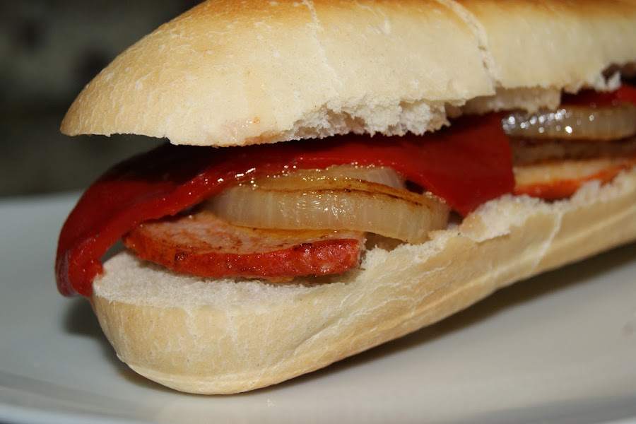 Para esas ocasiones siempre dispongo de alguna carne en el congelador como es el lomo o los filetes de pechuga de pollo, una conserva de pimientos del piquillo y pan precocido. La solución es peparar un bocadillo de lomo con pimientos que lleva hidratos de carbono, verduras, proteínas y aceite de oliva. Un plato realmente completo.