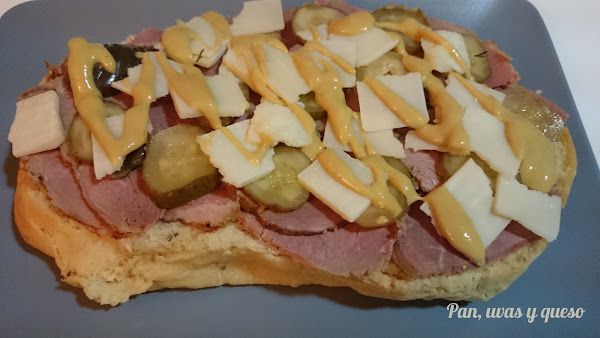 Hace unos días os contaba como hacer el pastrami en la Crock-Pot. Con ese pastrami preparé este delicioso bocadillo siguiendo una receta que vi en el "Heraldo de Aragón".