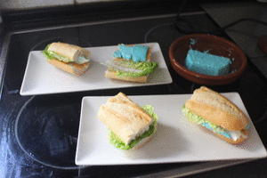 Introducimos en los bocadillitos el queso y la lechuga.