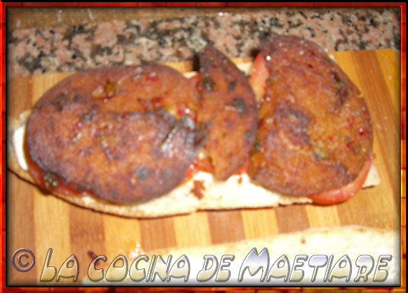 Ponemos encima la cebolla frita. Y colocamos encima la otra mitrad del pan.