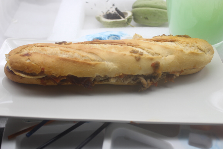 En esta ocasión tenía las sobras de un pollo asado dando vueltas por la nevera y un taper de pisto, pues se nos ocurrió a la mujer y a mi prepararnos dos bocadillos de pollo, uniendo ambos ingredientes.