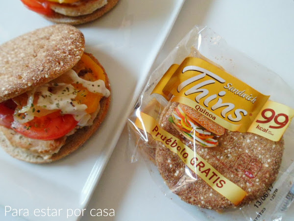 El pan a utilizar es importante. Podéis echar mano de un pan casero, como este pan integral con avellanas y pasas, o probar con los Thins de quinoa de Bimbo que he descubierto gracias a la Degustabox de este mes y que nos han venido de perlas para preparar estos bocatas.