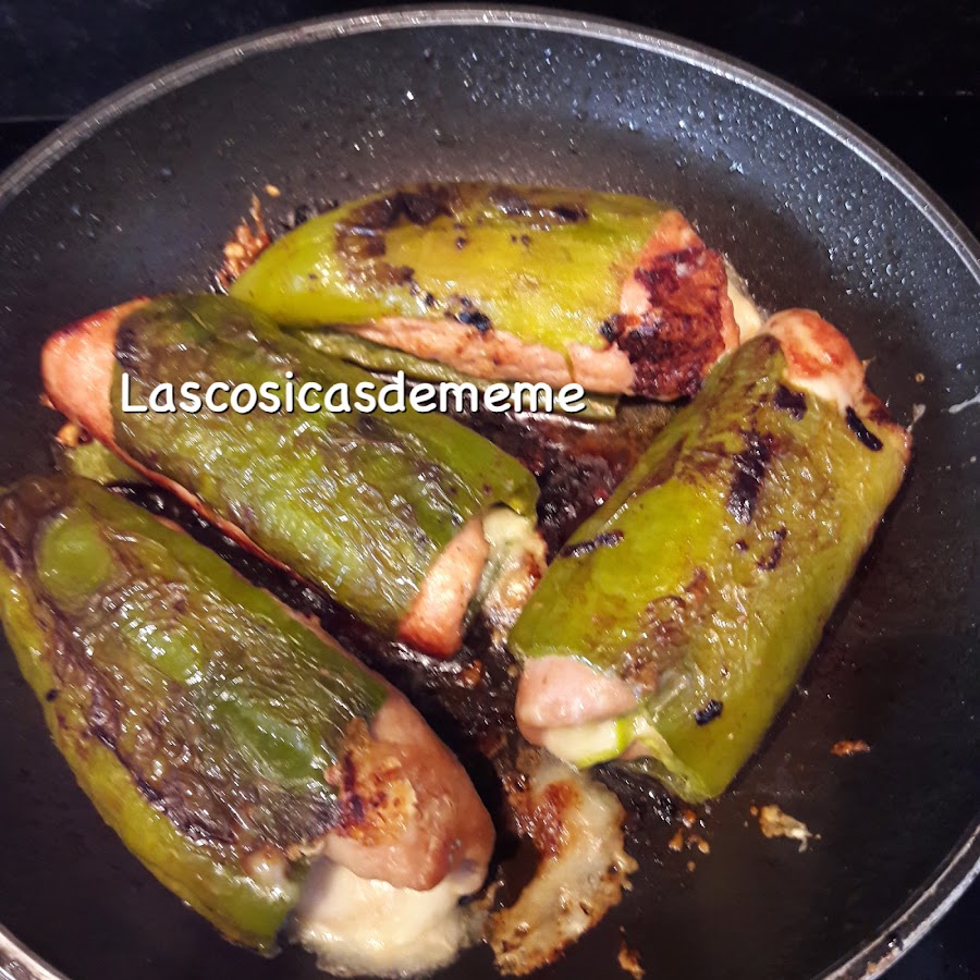 Ponemos una sartén al fuego con un poco de aceite a fuego medio, colocamos los pimientos, vamos dando la vuelta hasta que se hagan por todos lados.