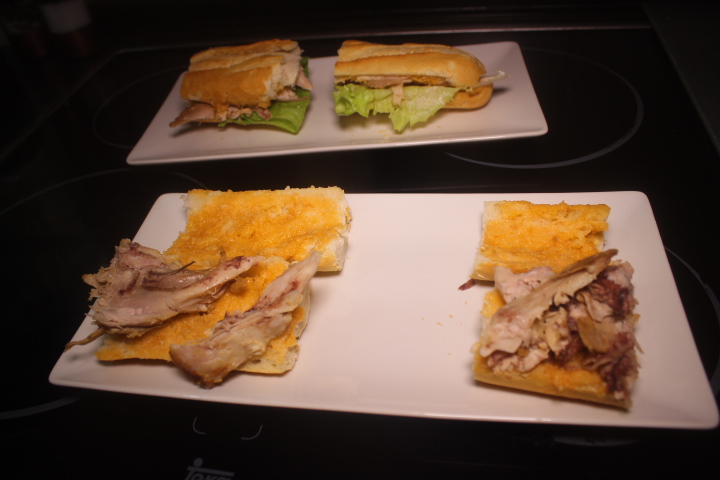 Otra vez, cenando con bocadillos, en esta ocasión, para aprovechar unos restos de pollo asado y que nos había sobrado bastante pan del medio día.