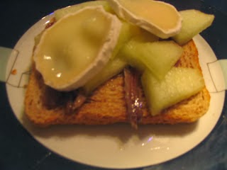 6. Rosa del blog "Comer especial" no se atrevía a mandarme su "Tosta de queso de cabra, melón y anchoas", pero menos mal que es una valiente porque sino me había privado de semejante combinación, tengo unas anchoas por sobar esperando a que termine la dieta :)