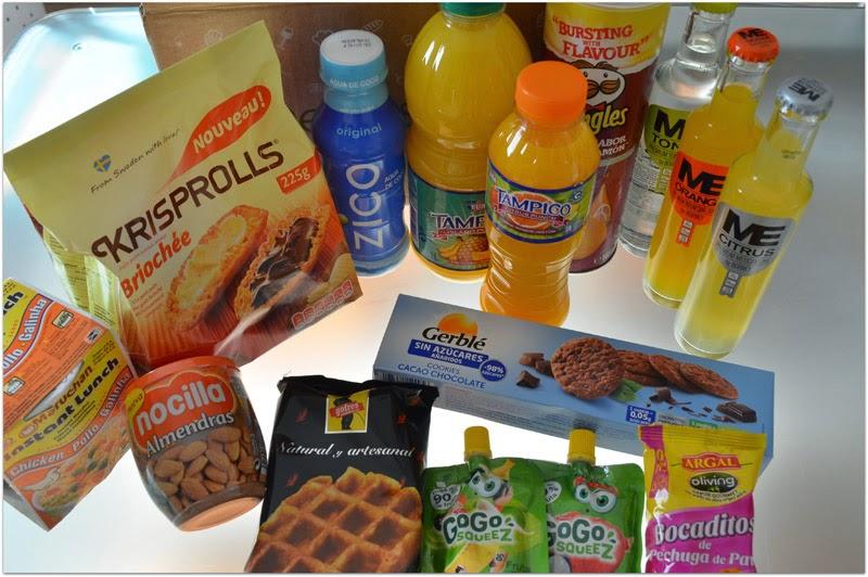 Este mes la caja venía con todas estas cosas, no ha estado nada mal, la verdad. Lo que más me ha sorprendido han sido los panecillos, sí que saben a brioché. A Alvaro los bocaditos de pechuga de pavo le han hecho mucha gracia y están bien para llevar para el recreo. Los refrescos los tendremos que probar aunque en la boda de mi cuñado ya pusieron la tónica para el gintonic y no gusto mucho.