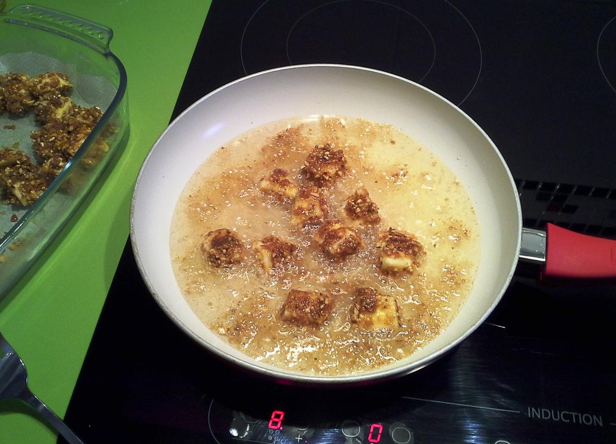 Y ya sólo queda calentar aceite en la sartén y freírlos a fuego medio-alto. Mejor si freís pequeñas cantidades de cada vez porque se hacen enseguida y hay que tener cuidado de no pasarse. En cuanto la almendra se dora un poquito hay que sacarlos y escurrirlos muy bien.