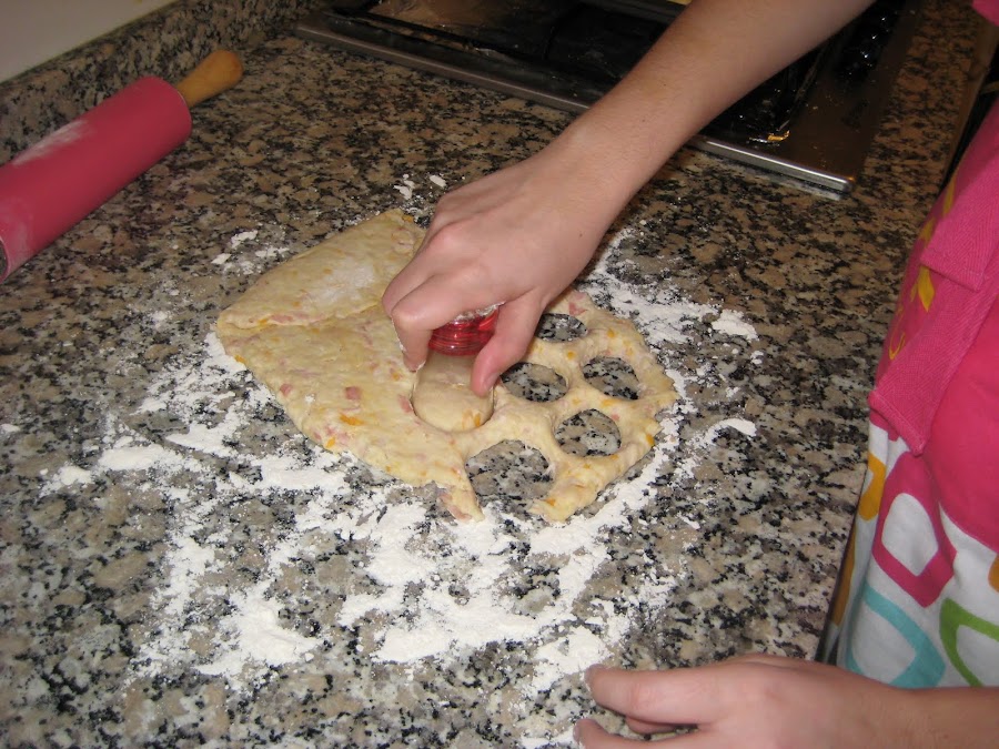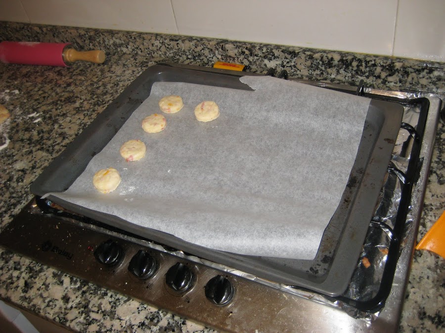 Cortar en circulos con un corta pastas, en caso de no tener cortapastas se puede usar la boca de un vaso pequeño.