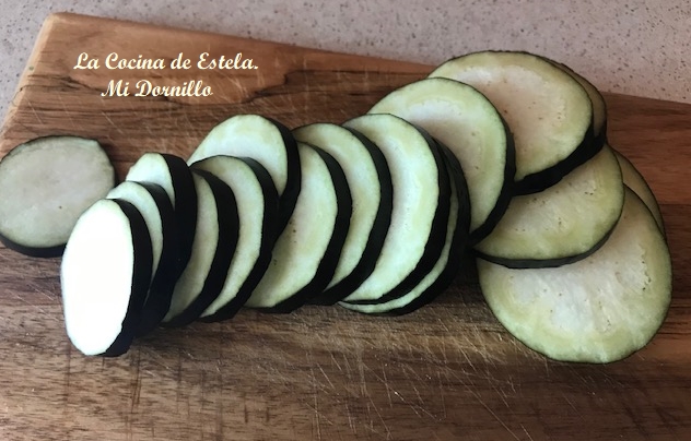 Cortamos las berenjenas en laminas finas.