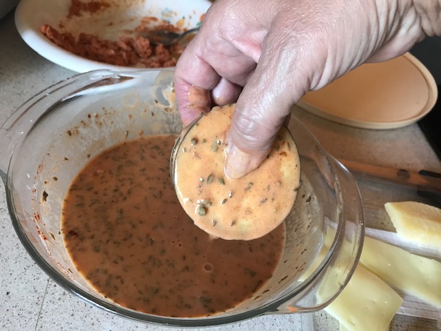 Así hasta hacer todos los bocaditos de berenjenas.