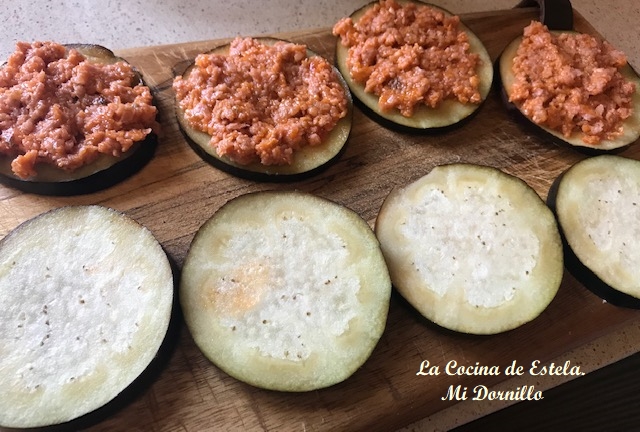 Las berenjenas es una verdura que me encanta, rellenas, fritas y de cualquier manera. Esta vez les he dado un toque de aperitivo, o también pudiera ser un plato único acompañado de una rica ensalada.