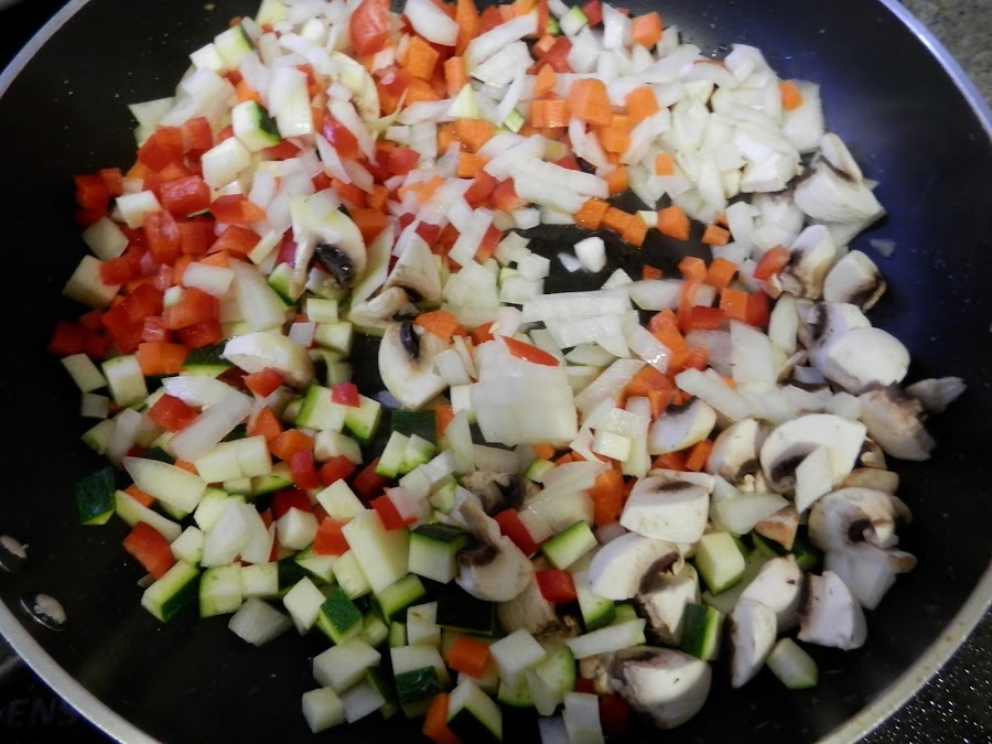 Picamos las verduras en cuadritos pequeños.