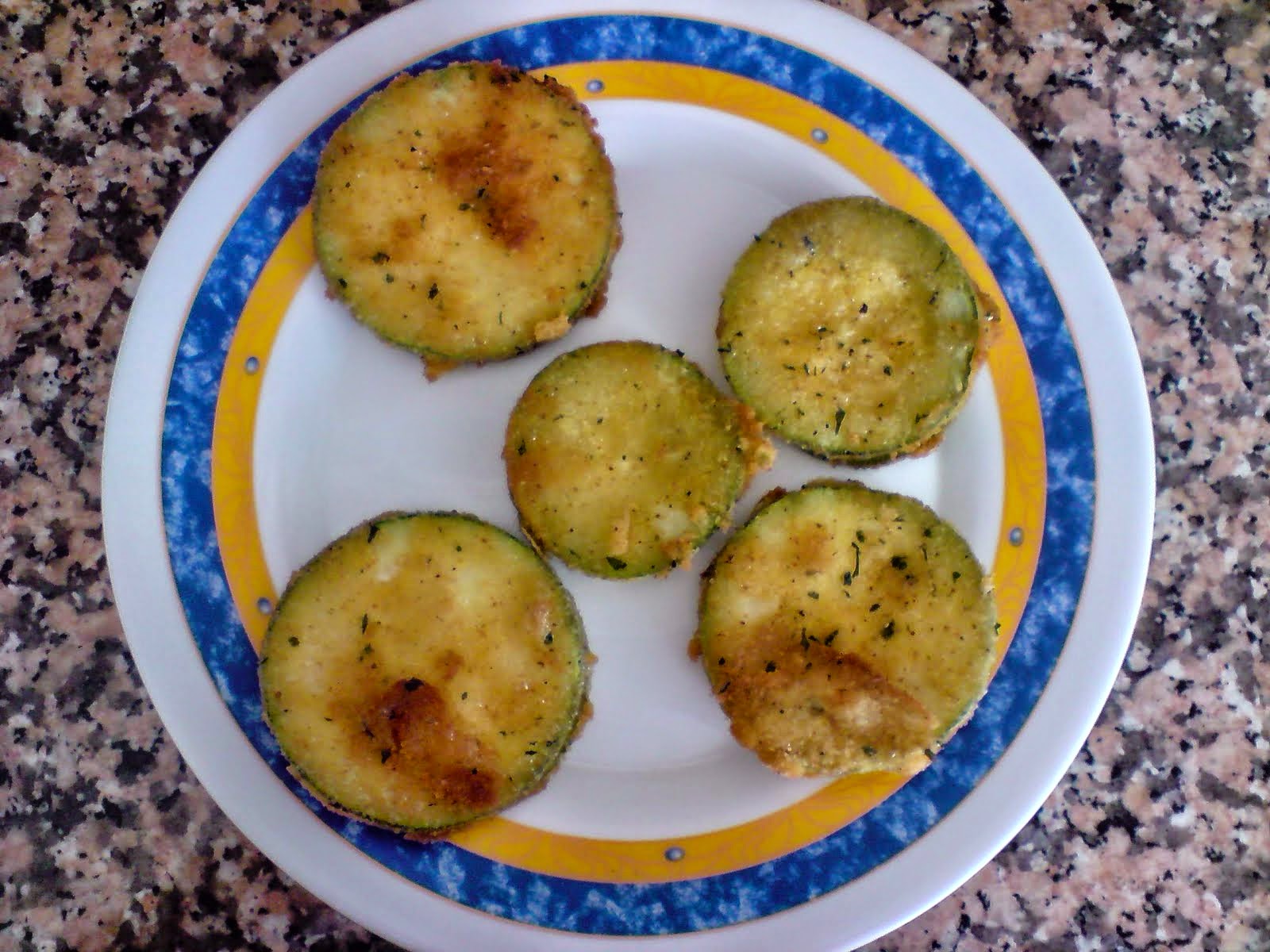 Lavamos muy bien el calabacín y lo cortamos en rodajas finas, de medio centímetro más o menos. Cortamos las lonchas de queso en trozos que no se salgan de las rodajas, y colocamos un trozo entre cada dos. Rebozamos en huevo y pan rallado y lo freímos en aceite muy caliente. Cuando estén doraditos los colocamos en una fuente con papel secante para absorber el aceite sobrante. Una forma diferente de comer verdura.