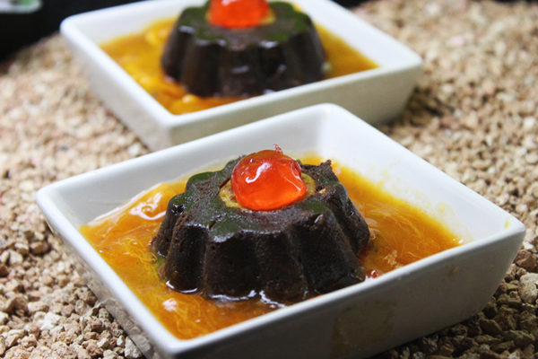 Colocamos la carne de cada caqui en una cazuelita de barro desechando su piel, la cual es muy desagradable al paladar.