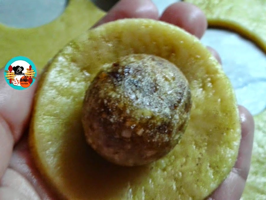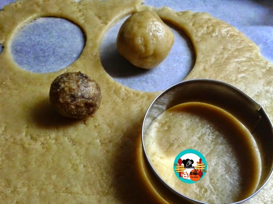 5.-Envolvemos la bola, le cortamos los extremos y sellamos con las palmas de las manos, de forma circular, para hacer una bolita con la masa.